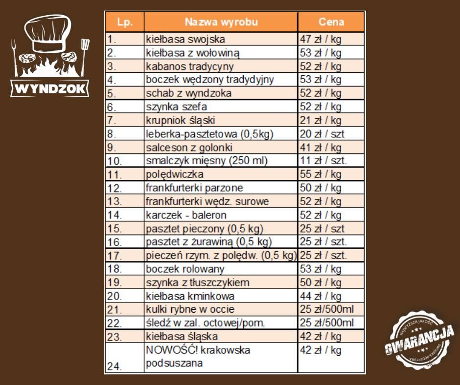 Swojskie wyroby z bieruńskiego WYNDZOKA na Twój stół Dowozimy co piątek dostawa Bieruń i okoliczne miejscowości GRATIS Zadzwoń i zamów pyszne świeżutkie swojskie wyroby z dostawą do domu lub jeśli