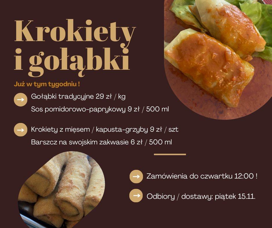 Aby ułatwić Wam życie i umilić naszymi domowymi smakami, w tym tygodniu w sprzedaży mamy gołąbki oraz krokiety Na zamówienia czekamy do czwartku godz 12:00 Odbiór/ dostawa – PIĄTEK. Zapraszamy