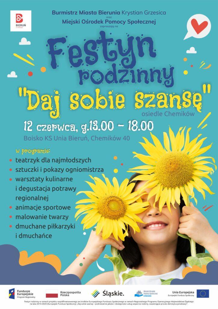 Zapraszamy na festyny rodzinne organizowane w Miasto Bieruń – pierwszy festyn jutro, tj. niedziela 12 czerwca, start 13:00. Wstęp wolny dla wszystkich, nie tylko dla mieszkańców osiedla Wszystkie dzieciaczki szczególnie
