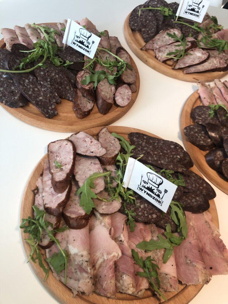 Szynka, schab, kiełbasa swojska, kiełbasa pieczona z wołowiną, kabanos, smalczyk swojski, ogórki, sos chrzanowy